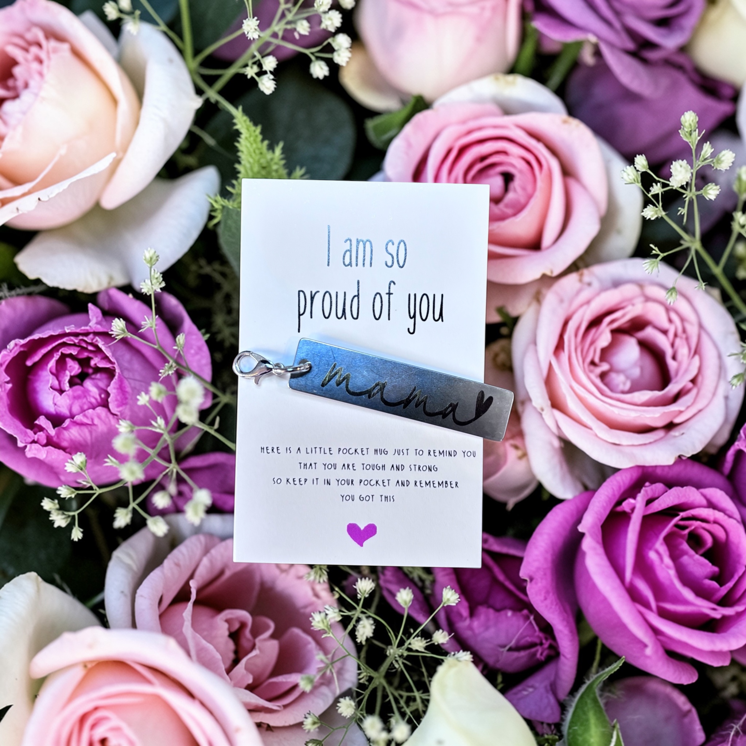 Deze Pocket Hug met het subtiele “mama”-bedeltje en de tekst “I am so proud of you” draagt precies die boodschap in zich. Een klein, tastbaar gebaar dat zegt: ik zie jou, ik waardeer jou, en wat jij doet – of hebt gedaan – doet ertoe.