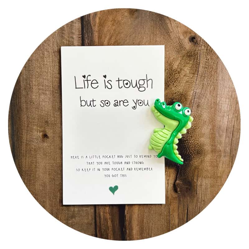🐊 Pocket Hug – Krokodil ‘Life is tough but so are you’ 💌
