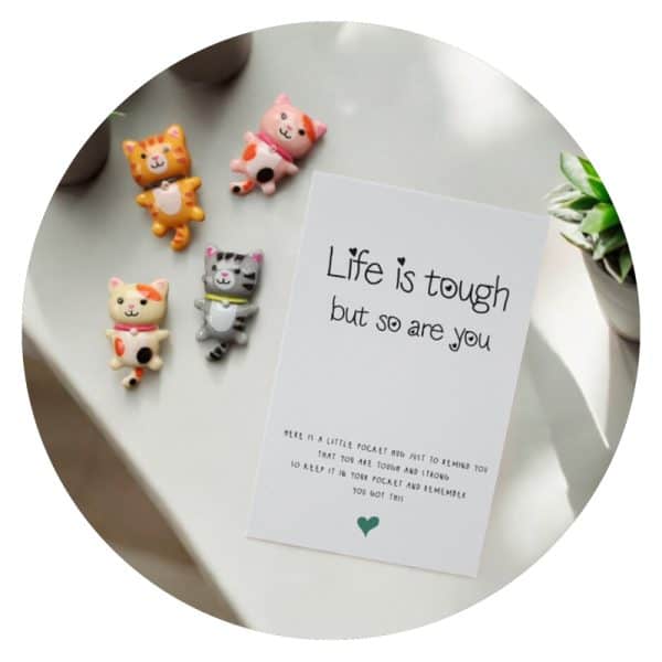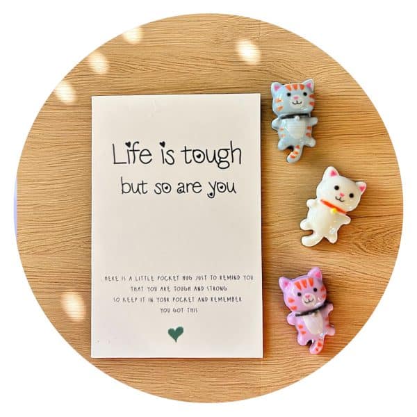Hoe moeilijk het nu ook is, hoe lastig het ook is om vertrouwen te houden: deze tijd gaat voorbij. Het wordt makkelijker, het gaat minder pijn doen, er komt een moment waarop je denkt: hee, dit lukt! Maar dat betekent niet dat je je af en toe niet verdrietig kunt voelen, eenzaam of alleen. Deze pocket hug laat je weten dat je er het weliswaar zwaar is nu, maar dat je sterker ben dan je denkt!