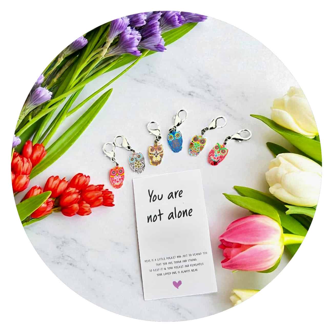 De uil is al eeuwenlang een symbool van wijsheid, inzicht en bescherming. Hij ziet wat anderen niet zien en herinnert ons eraan dat ook in het donker licht aanwezig is. Dat maakt deze You Are Not Alone-pocket hug zo’n waardevol cadeautje. Een klein, betekenisvol gebaar voor iemand die steun kan gebruiken, voor een vriendin die zich soms wat verloren voelt, of voor jezelf — als liefdevolle herinnering dat je gedragen wordt, zelfs als het even stil is.